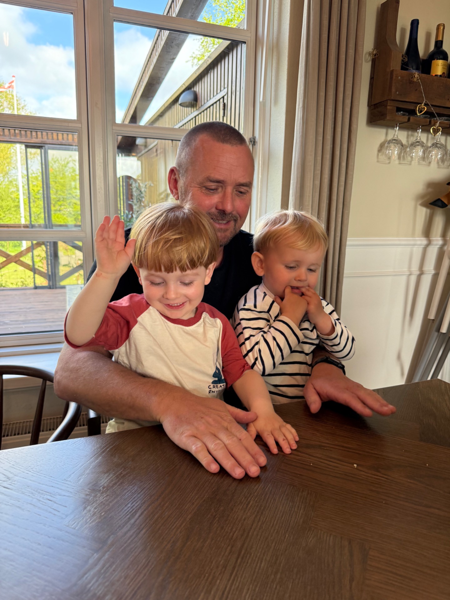 Vi bor i Jersie, sammen med Victor på 15, Lærke på 14, Conrad på 9 og vores 2 krøllede, og meget søde labradoodles